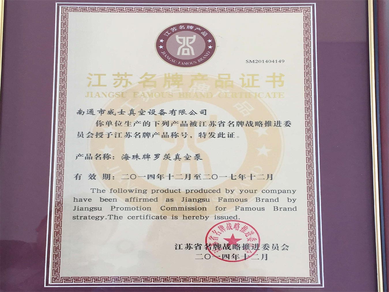 我公司在每年度榮獲“南通名牌產品”的基礎上,近日又獲得“江蘇名牌產品”, 該榮譽稱號的獲得將激勵我公司再接再厲,繼續深入實施名牌戰略,全面加強質量管理, 不斷增強企業核心競爭力,努力追求卓越績效,繼續揚帆遠征,收獲碩果。...